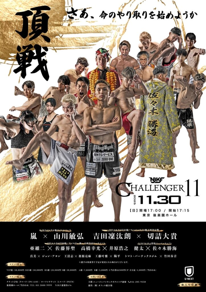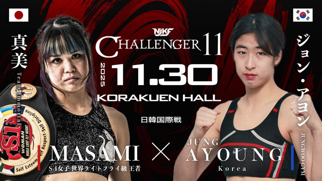 「NJKF CHALLENGER」は、このNJKFが主催する一連の大会シリーズのひとつで、単なる 興行ではなく、「挑戦者(Challenger)」という言葉どおり、“挑戦” や“新星発掘/トップ選手との対戦の舞台”という性格が強いイベントとして設定されているのが特徴です。